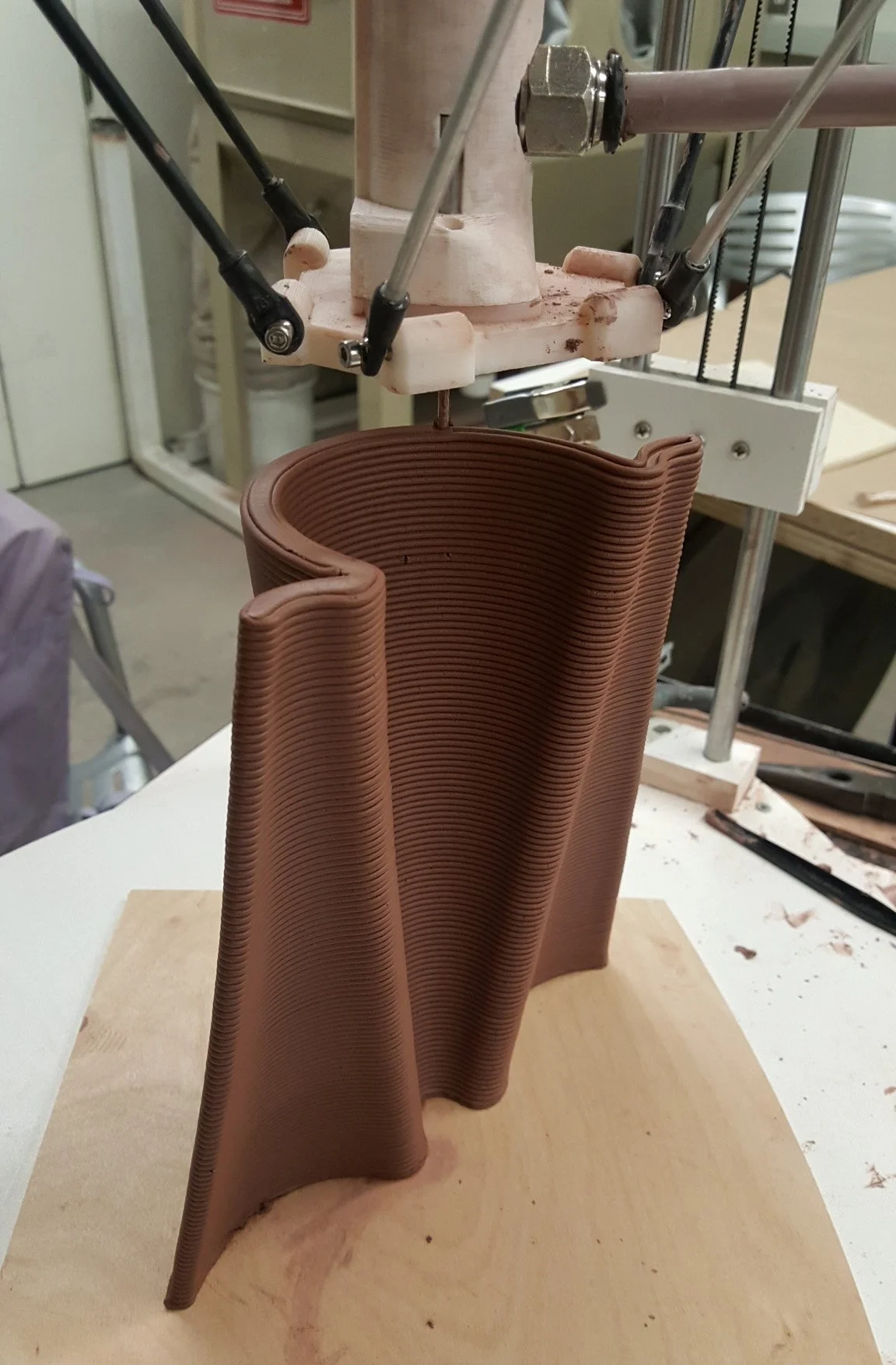 Innitial DesignThe 3rd brick we print ... was an attempt to test the translation from dynamic curved form to tool path printing time. The tool path went smooth and the circular geometry reduce travel time from one layer to the next. The printing time was much faster, so we decide to make the profile of our geometry into a circular shape.